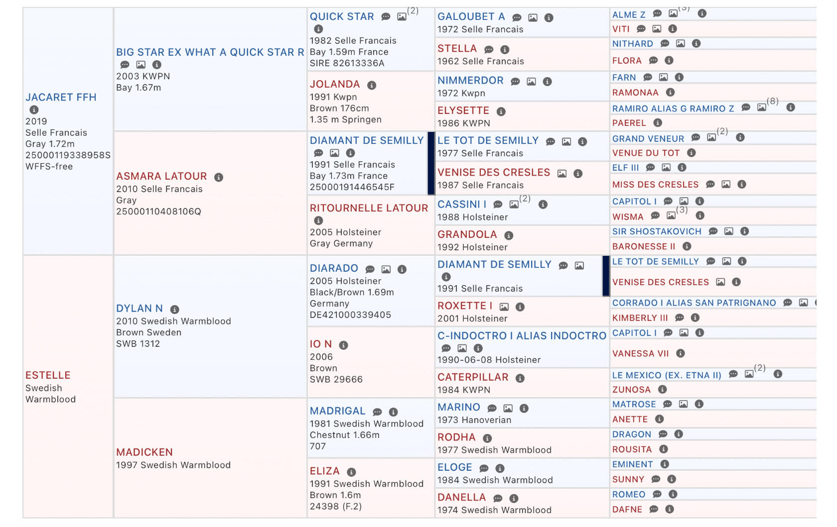 Mamman Estelle hann inte tävla så mycket innan hon skadade sig, men är nu igång igen. Hon har fantastisk ridbarhet och mycket fin hoppteknik. Filmer finns på Instagram: Vickirydenfors.